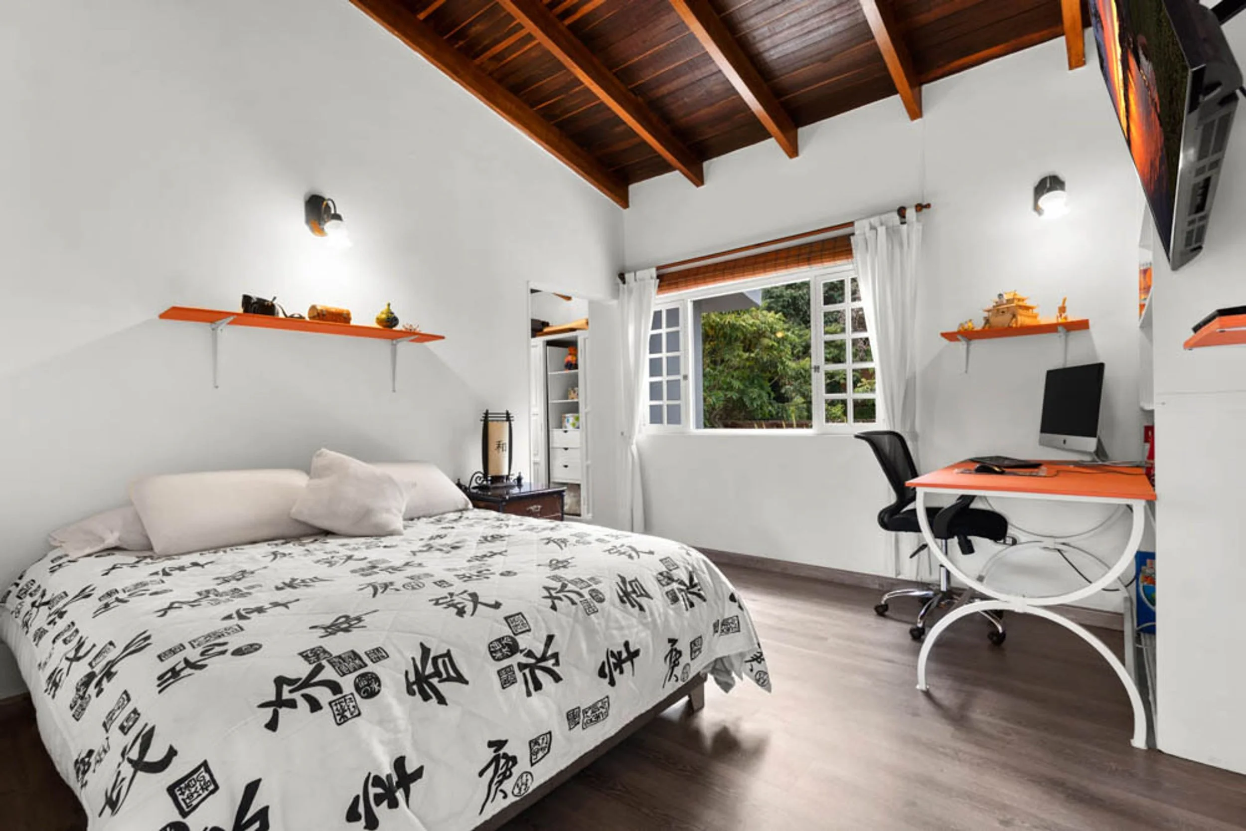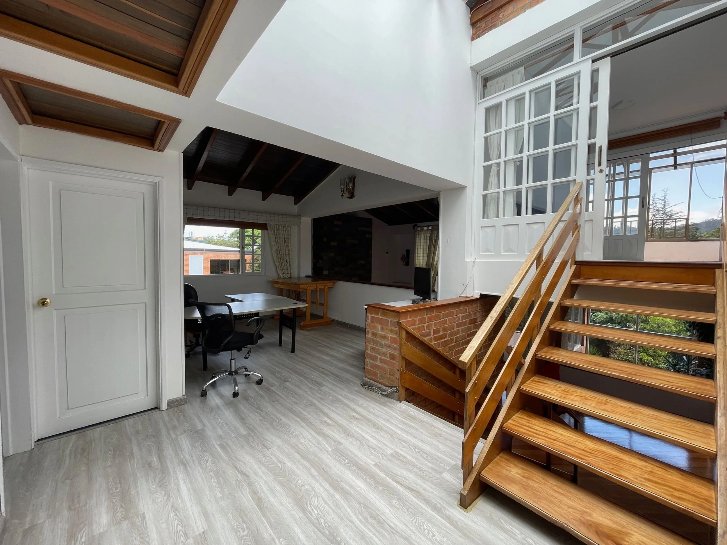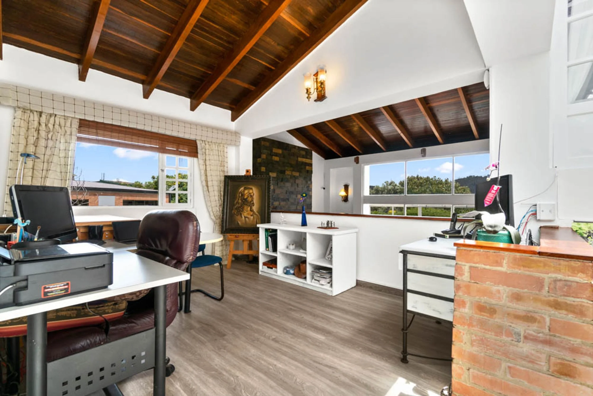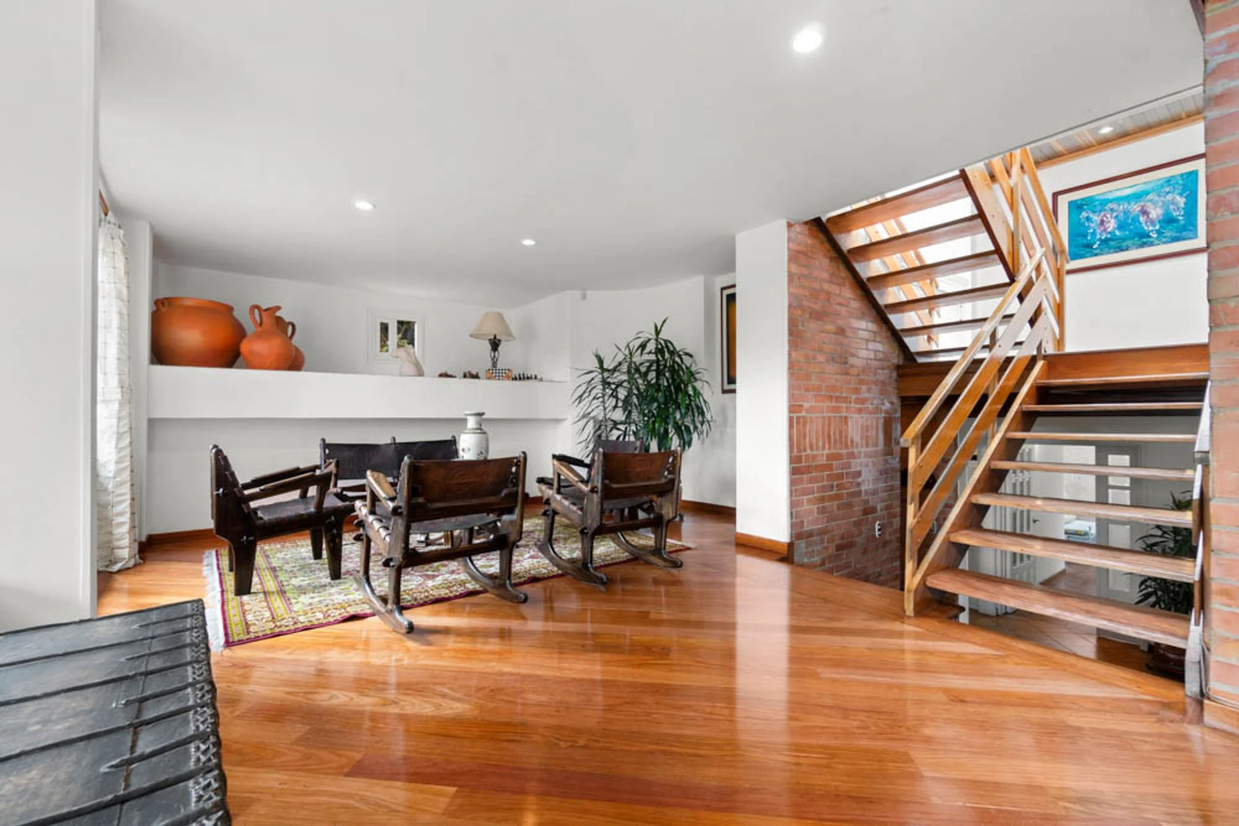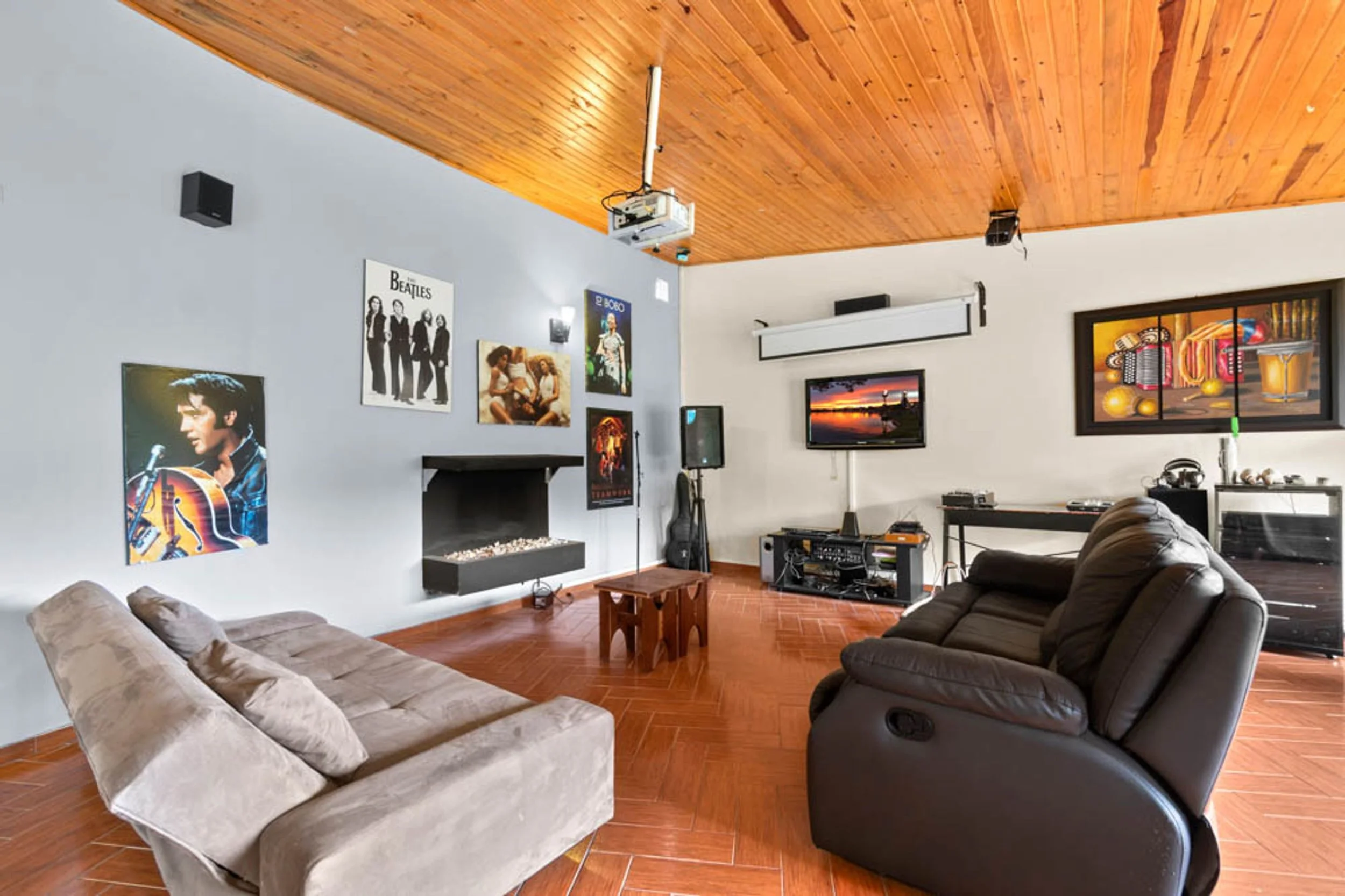 En su interior, la casa ofrece tres habitaciones, una cocina integral con isla, un amplio salón-comedor ideal para reuniones, un estudio y una sala de familia, adaptándose a múltiples estilos de producción. Los finos acabados como pisos de madera, una chimenea tradicional en la sala principal y una cocina con isla aportan un toque de lujo y autenticidad a cada espacio.