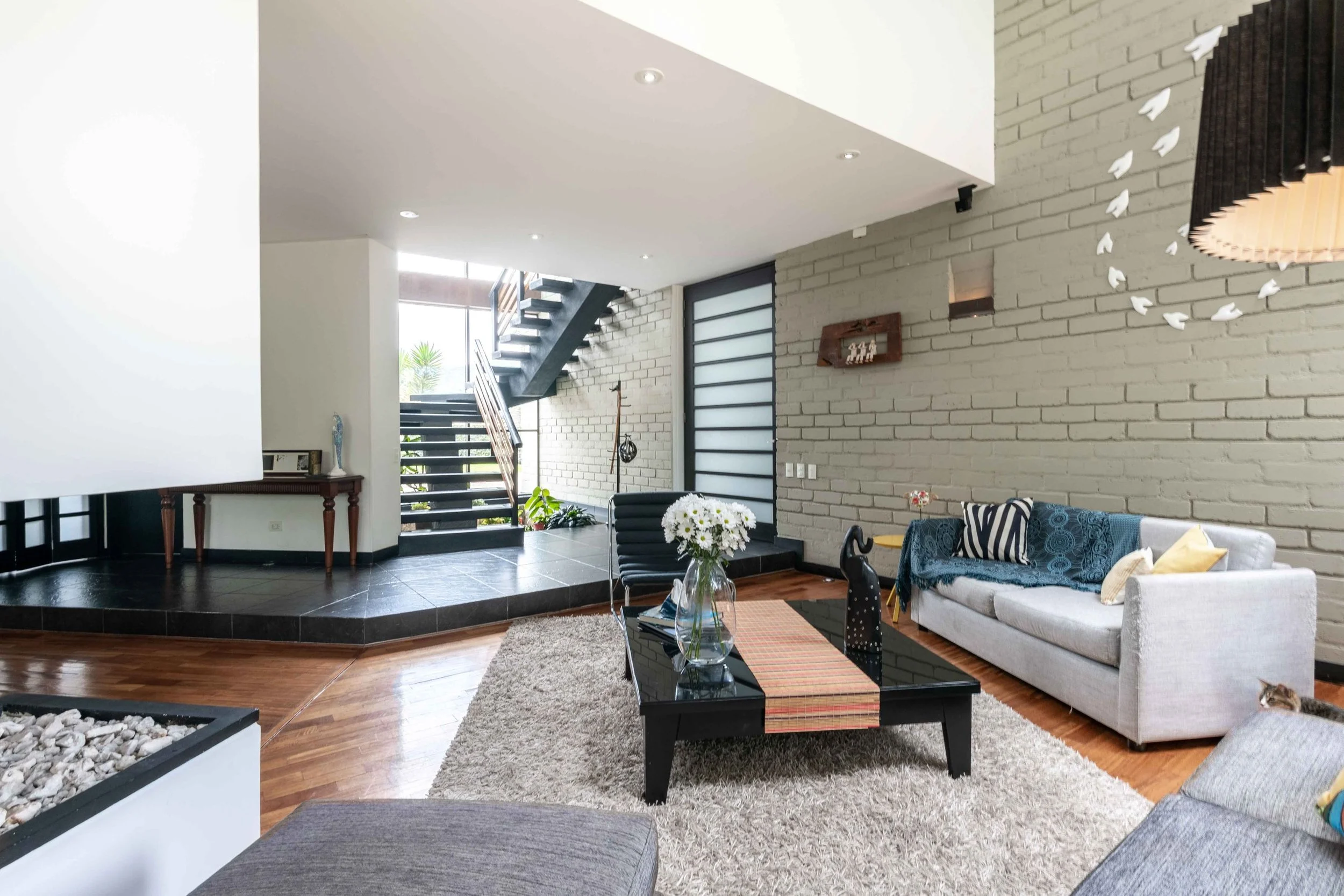 En el primer nivel, la casa cuenta con una amplia zona social, que incluye una sala con chimenea tradicional, comedor independiente y una espectacular terraza privada, conectada con un extenso jardín. La terraza es el escenario perfecto para filmaciones que requieran ambientaciones sofisticadas al aire libre, mientras que el jardín ofrece un espacio versátil para diversas escenas y actividades.