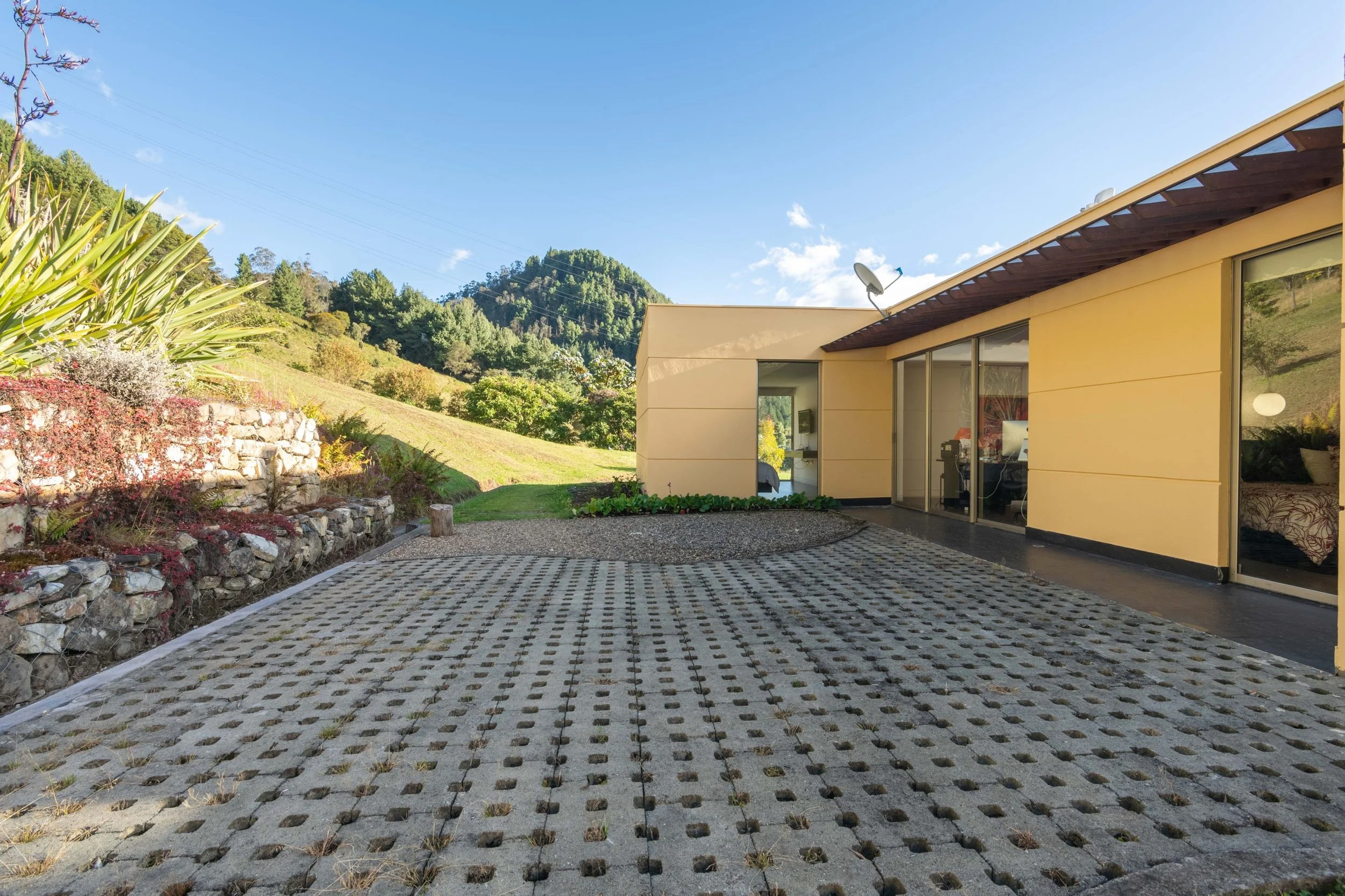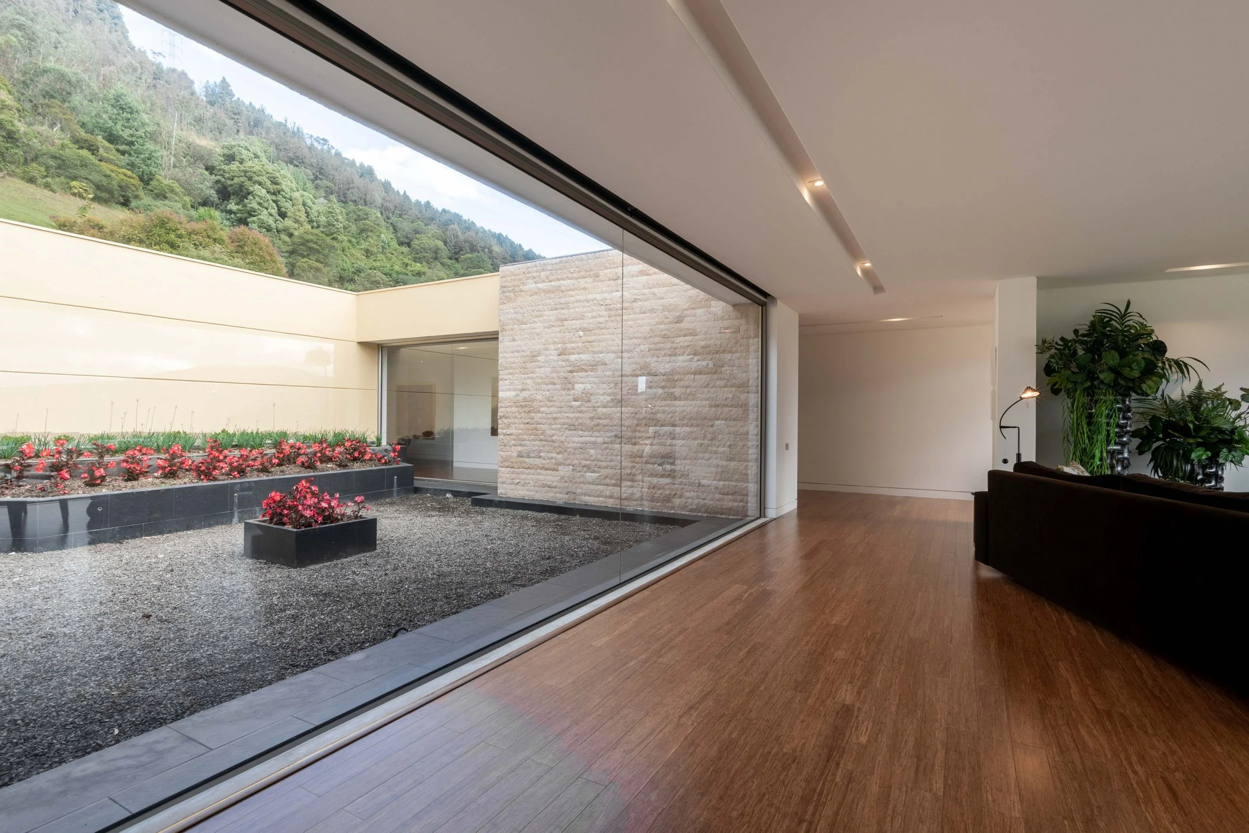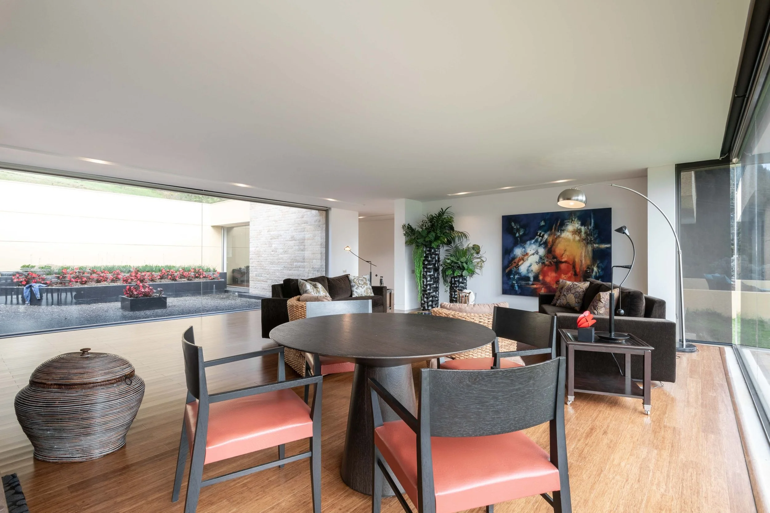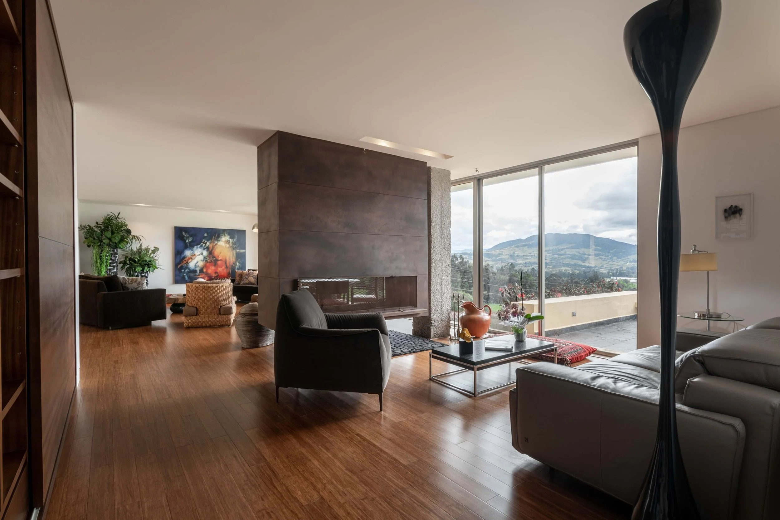 Distribuida en dos niveles, la propiedad destaca por su amplio y luminoso comedor con una vista imponente al valle de Sopó, creando un telón de fondo natural espectacular. La cocina abierta con diseño de isla aporta un aire moderno y sofisticado, mientras que la gran terraza con BBQ que rodea toda la casa añade versatilidad para diversas ambientaciones.