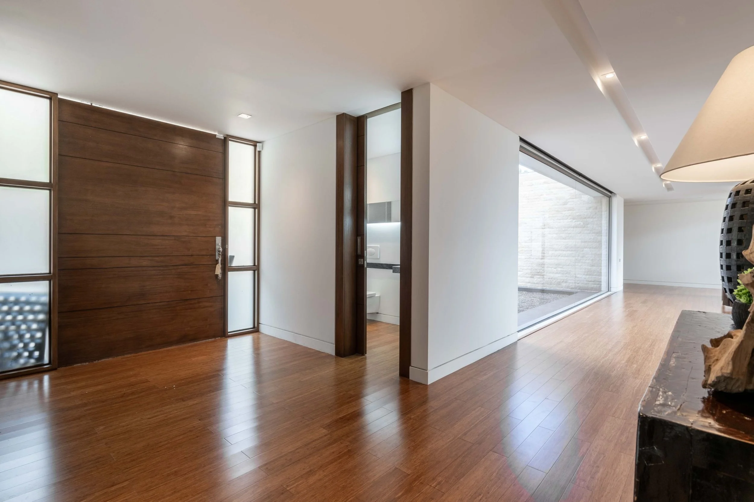 En el área social, una chimenea natural aporta calidez y un ambiente acogedor, ideal para escenas que requieran una atmósfera íntima y elegante. La casa cuenta con cinco habitaciones, cada una con baño y vestier privado, ofreciendo múltiples opciones de ambientación para filmaciones. Además, un acogedor estar de televisión complementa los espacios, brindando una zona de descanso y entretenimiento con un diseño funcional.